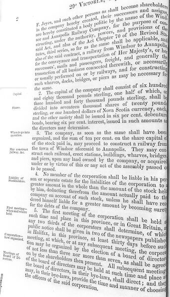 Revision as of 19:11, 14 June 2023 by Sarah Taylor (talk | contribs) (Source Nova Scotia Archives<br> Photograph of a page from a book of acts of the Nova Scotia Legislature passed in 1866.<br> Chapter 1 of the Acts of 1866<br> Page 2<br> Category: Nova Scotia Archives)