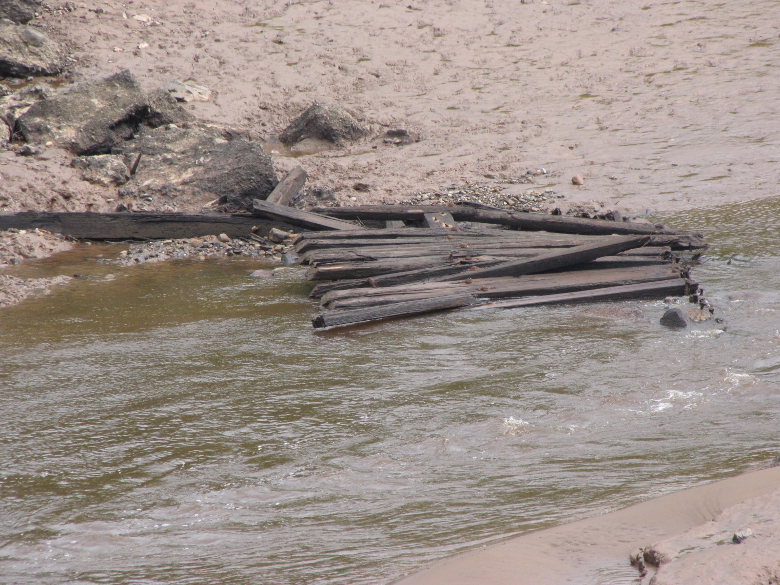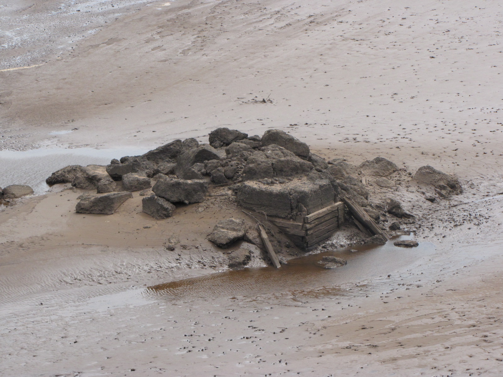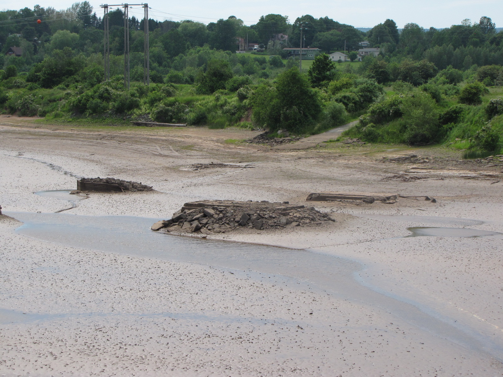 Matt had informed me about this and when I was in Window today, you were able to see the old Piers of where the old train and car bridges where. Currently with the lake drained (assuming currently tidal) your able to see them, and if you have some rubber boats you could walk right up to most of them.