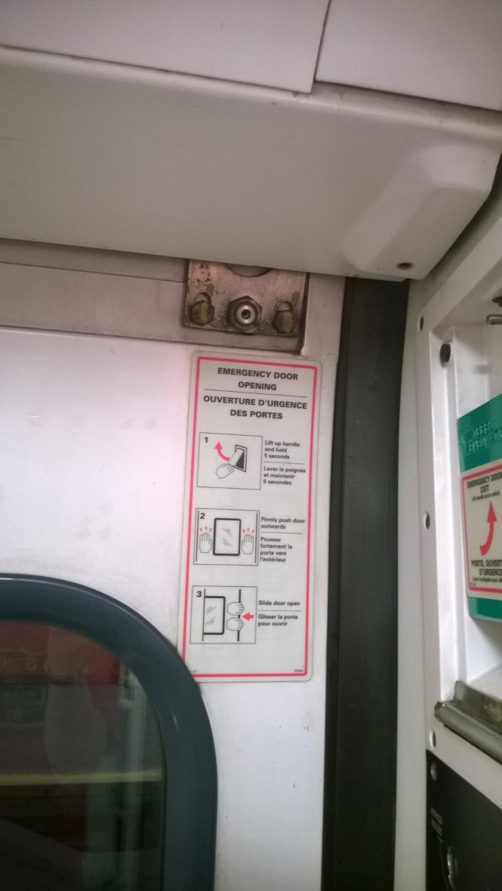 We took The Ocean up to Montreal and back to Halifax. Lots of great views, and found out about some sidings which I wasn't aware of, and that in Oxford Junction they still have a little spur that's part of the Old Oxford Sub that went up to Pugwash looks like it's now just used as a siding for when they need to load MOV and equipment as they spare ties and old rails there. And on the way back to Halifax I got to be one of the passengers to extra training in how to use the emergency equipment to open the doors in case of an emergency! So I've included a photo of the emergency lock. Also found out that the cars used on The Ocean were once meant to be used for the Chunnel Run Between England and France but the rail line over there didn't want the cars any more so VIA bought them and have been using them on The Ocean since 2001/2002 since they got the cars. They have a single car between the last sleeper and the Park car that's basically open inside because it's been converted to have a standard North American coupler on one side and the European coupler on the other side to be used on the train. This is so they can continue to use the Park Car on the end of the train.