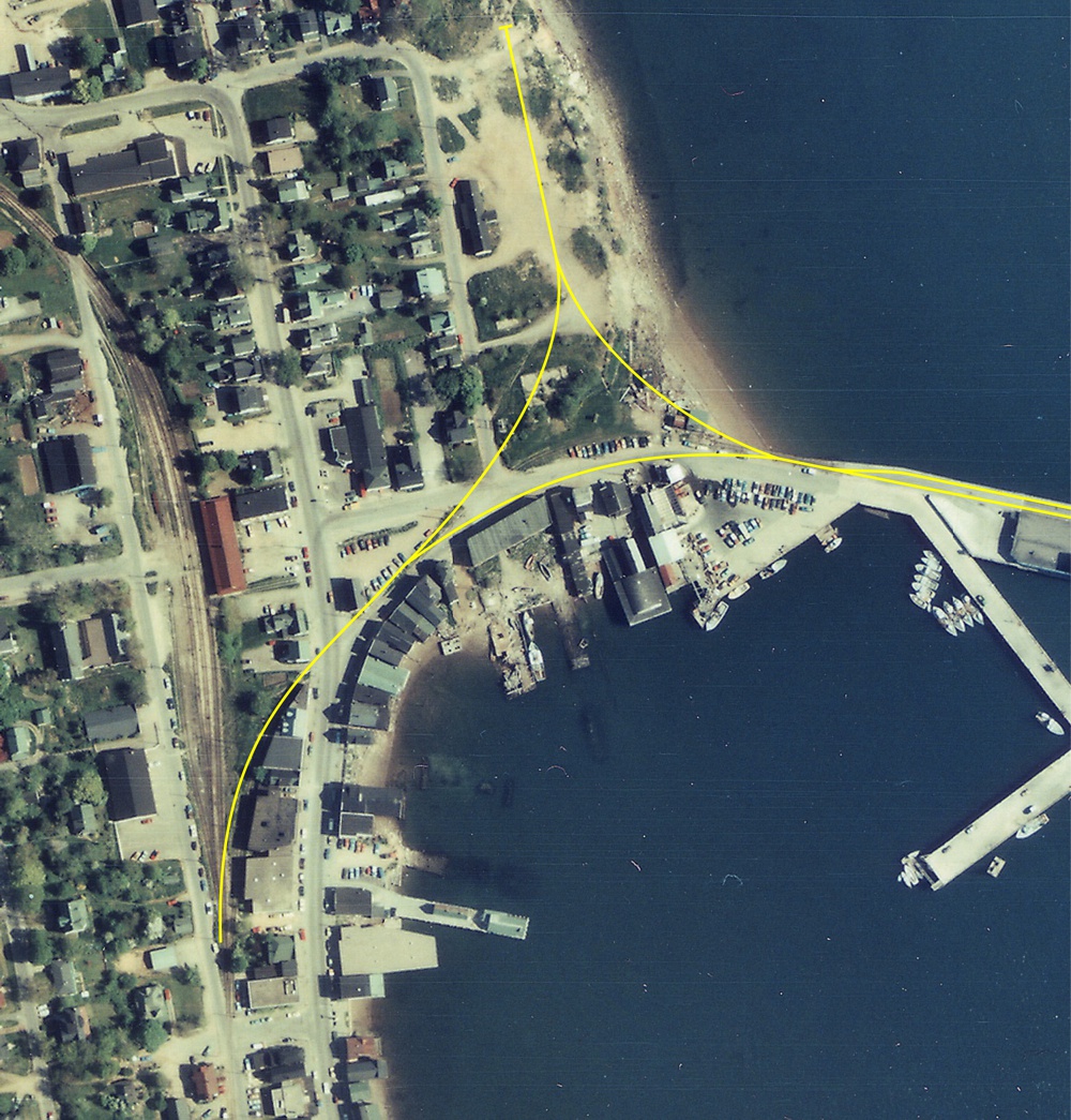 that looks possible but there have always been buildings in that area that pre date the railway wye and ive never seen photos of the pier with a right side turnout for a wye connection. ive been told it was only there in the early years and was in an area they call the racquette. it looks to steep to me for the back connecting leg of the wye but there is still evidence of an embankment, said to be a rail line to the pines, across the racquette back in the day. (early 1900's). there are good 40's and 50,s aerial shots that have no wye in the area. having said that there was a turntable in digby from the early 1900's on so why a wye anyway ?
