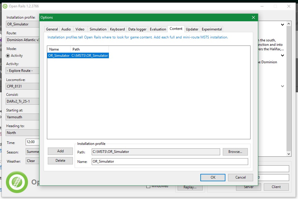 In the last couple of days I've helped a friend install Open Rails on his computer and he is running the latest DARv3 beta. This is free and really didn't take a lot to get him set up seeing as it was also my first time setting the sim up without having Microsoft Train sim on his system.