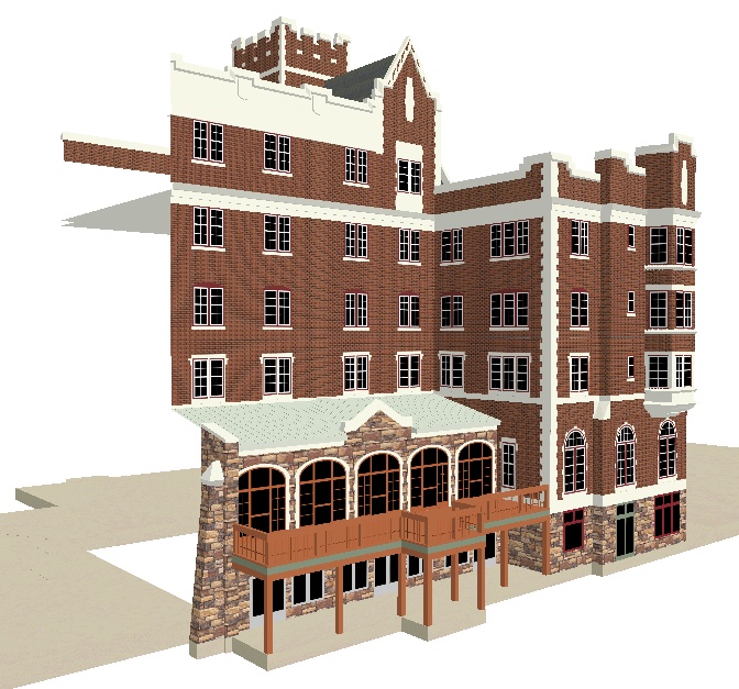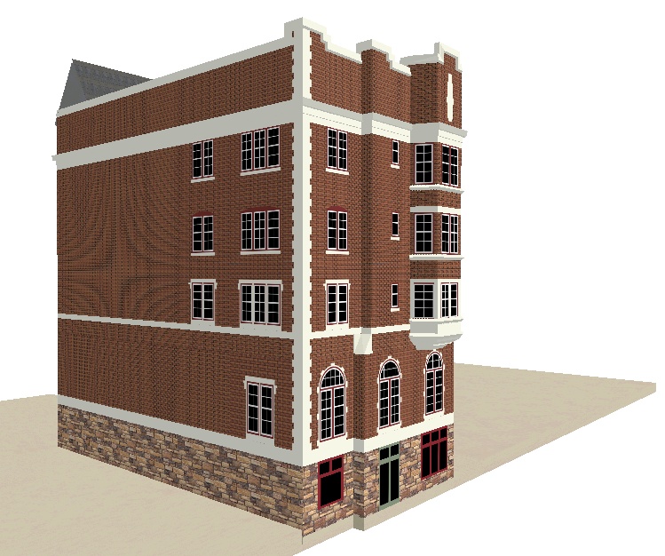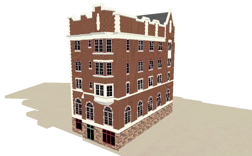 Thought I'd post a couple of shots of the beginnings of the Cornwallis Inn I'm working on. I can draw the "typical" apple warehouse in an hour or so, this after a day of research and two days of drawing. To keep the poly-count down I've been drawing windows as a separate texture, then applying them to polygons on the model. One window might contain forty polygons but by making one model and using an image of it as a texture that forty polygon window is down to one polygon on the model. This worked well but I'm up to sixteen different windows and 744 polygons on this one section of the Inn!