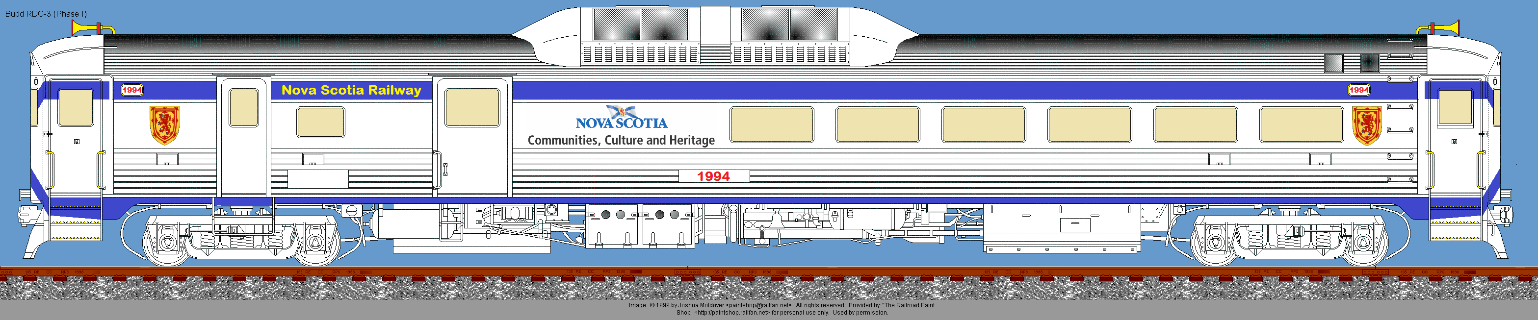If I had front view of the RDC you would see the NS flag with the crest on the door. The crest that's on the RDC I found on Google along with the Nova Scotia Government department logo. I thought Communities, Culture and Heritage would be the fitting department instead of Transportation because the RDC service would be binding communities & culture together and heritage being rail service.