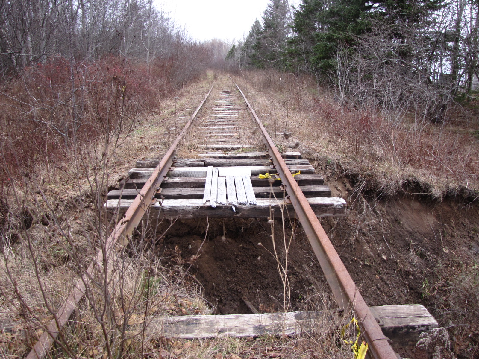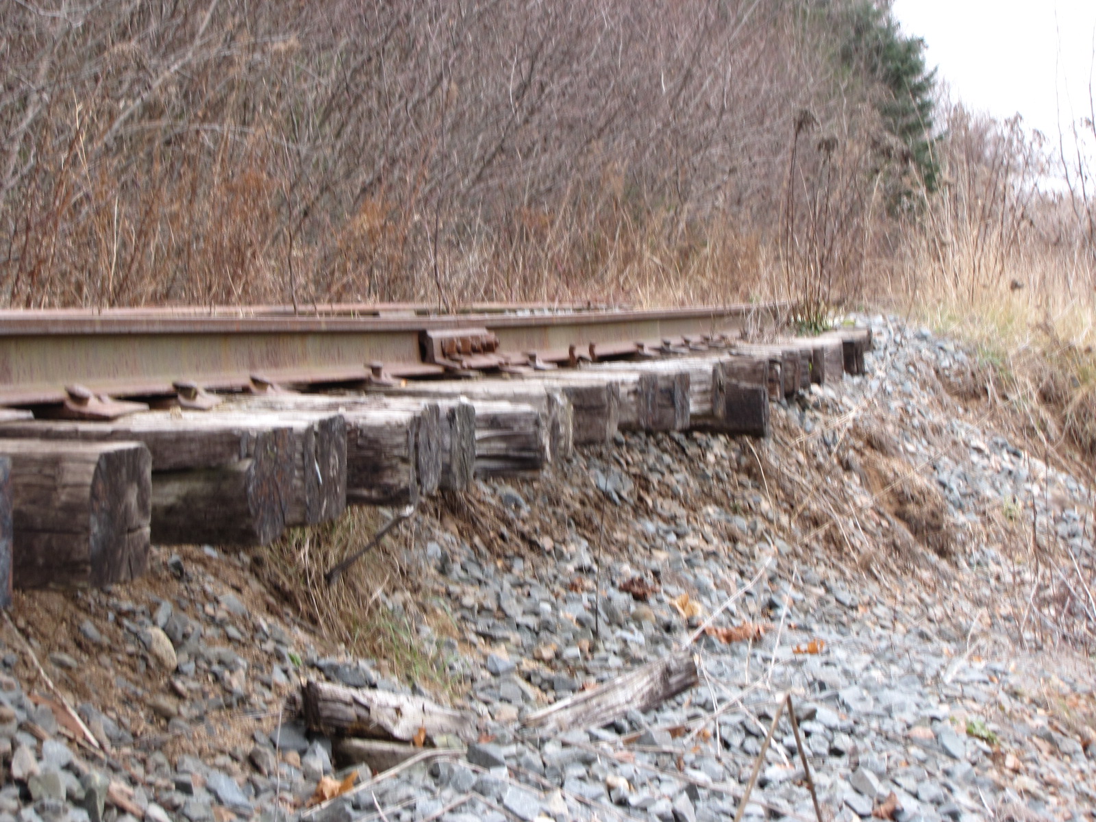 Today Samuel Clark and I went on a DAR field trip. No changes at Windsor and Hantsport to report. We continued on to Blue Beach Rd, and walked along the ROW going west and found one partial and one full washout. This is in addition to the washout we couldn't find. No changes at Wolfville. A two pieces of rail have been removed from the siding at Port Williams next to the feed mill. We found a disappointing sight at Greenwich. The rails from the three tracks at the crossing have been removed and paved over. The Crossing posts are still in place, along with the electrical cabinet, while the lights and crossbucks have been removed. Dirt now covers some of the tracks, and the siding into Frito-Lay is gone. A depressing sight indeed. At Steam Mill, the office from the elevator remains, but the grain bins are gone, and so is the concrete and rails. No changes in Centreville, and the former location of the station is still a mystery to us.