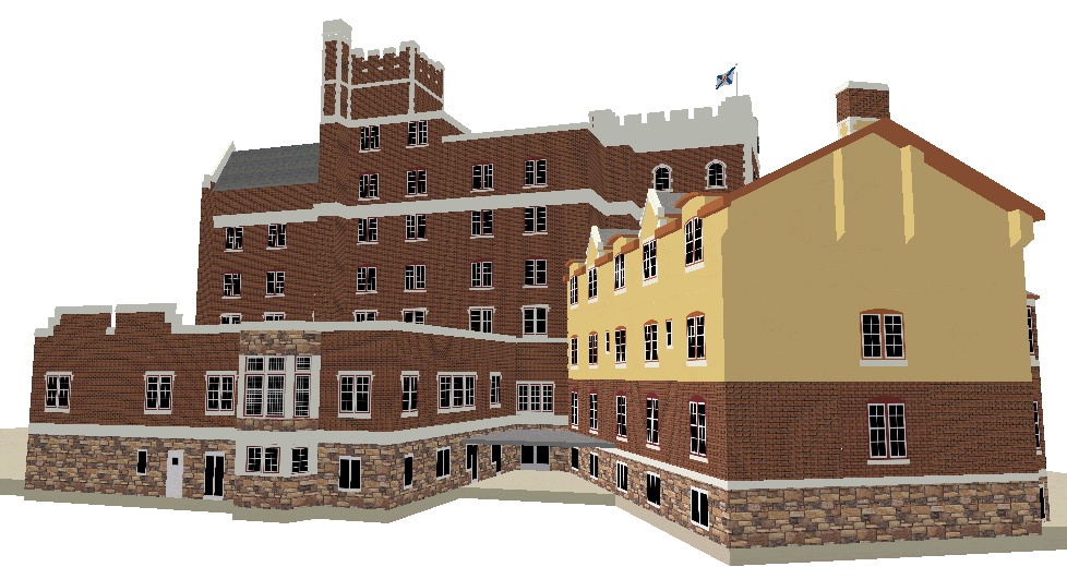 The rear additions are finished. Other then a side entrance to be added to the large tower, this is the model I'll be using to back date the building to the '40s for Steve.