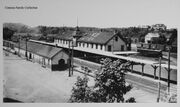 | 18:40, 31 March 2023 | Comeau001.jpg (file) | 650 KB | Louis Comeau collection<br> The Kentville Station with the Kentville Freight Shed and the Kentville Car Shop on the far left, circa 1910. Note the DAR combine or baggage car on a spur behind the station and the DAR boxcar, possibly No. 1294. and two CPR box cars on the back road spur with River Street behind and the sanitarium in the distance. The unusual elevated view was probably taken from the steeple of the old Presbyterian Church at the... | 1 | |