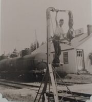 | 12:17, 25 February 2023 | Kalkman034 Twaddle2.jpg (file) | 454 KB | John Twaddle, son of the postmaster, setting up the railway catch post at Coldbrook, Nova Scotia, preparing for one of the last DAR mail trains, photographed by James Twaddle on August 14, 1956.<br> Visible behind is the White Rose bulk fuel dealer with tank cars. Photo print from Tony Kalkman, featured on a [https://www.facebook.com/groups/DARDPI.ca/posts/1834833153551772/ DAR-DPI.ca Facebook post, February 16, 2023]. [[Categ... | 1 | |