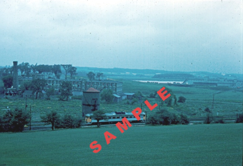 Original Kodachrome Slide, August 1961, Dominion Atlantic Railliner passes water tower, Windsor, NS.