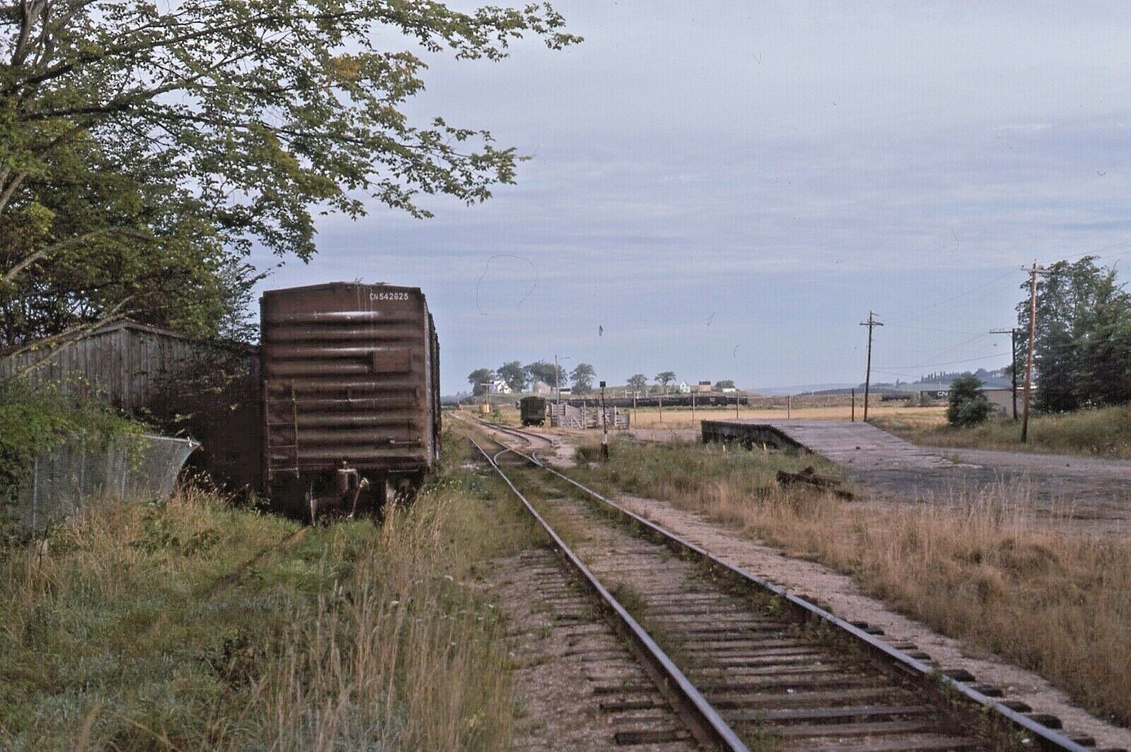 Looking Westward towards Windsor Railyard. Note the loading ramp and the stock yard on September 5, 1977.