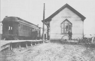Canning Station, from the west with DAR Combine No. 31 "Daphne" in a eastbound mixed train, circa 1910.
