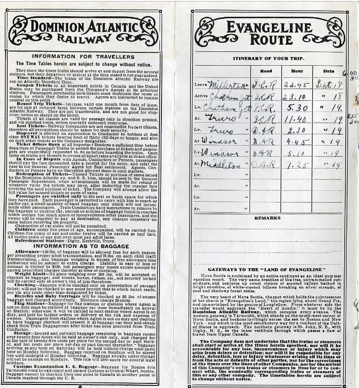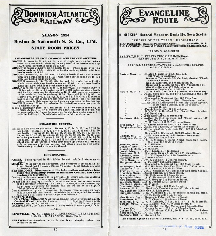Dominion Atlantic Railway Public Timetable and travel information brochure marked Effective June 29th 1914.