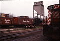 Windsor, with CPR Locomotive 8132 and freight train on the Avon River Causeway and a Southern Railroad boxcar parked at the L. A. Armstrong Apple Warehouse, Oct. 17, 1979.
