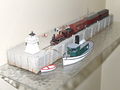 Construction underway on the Kingsport Wharf and lighthouse in HO scale.