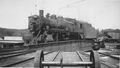 No. 1090 on the Kentville Turntable with the water tower in the background at Kentville on May 2, 1939.
