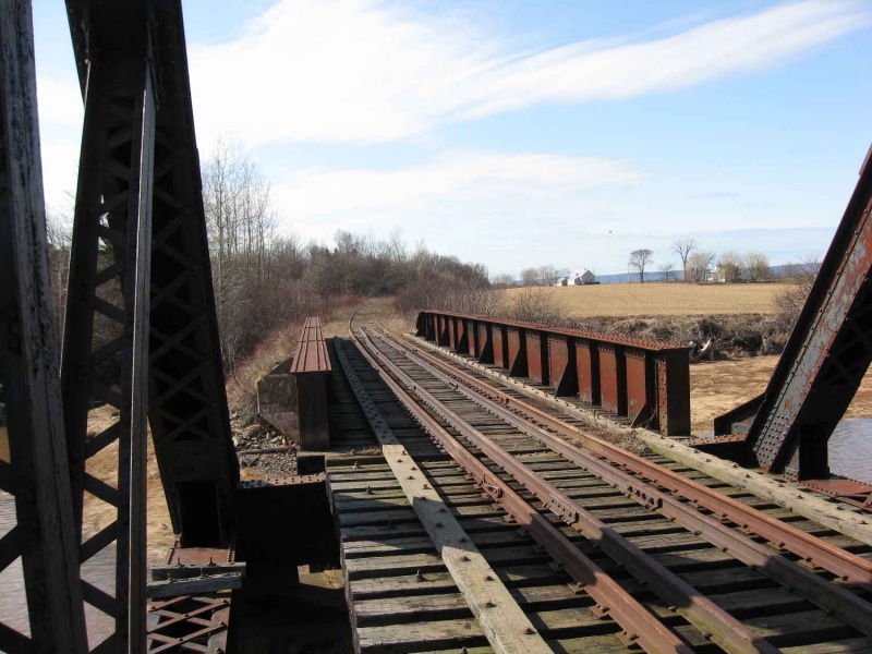 March 20, 2010. Gaspereaux Bridge, Built By W.P. McNeil & Co. Ltd., New Glasgow N.S. in 1911. Some of the rail is dated 1911 and 1944.