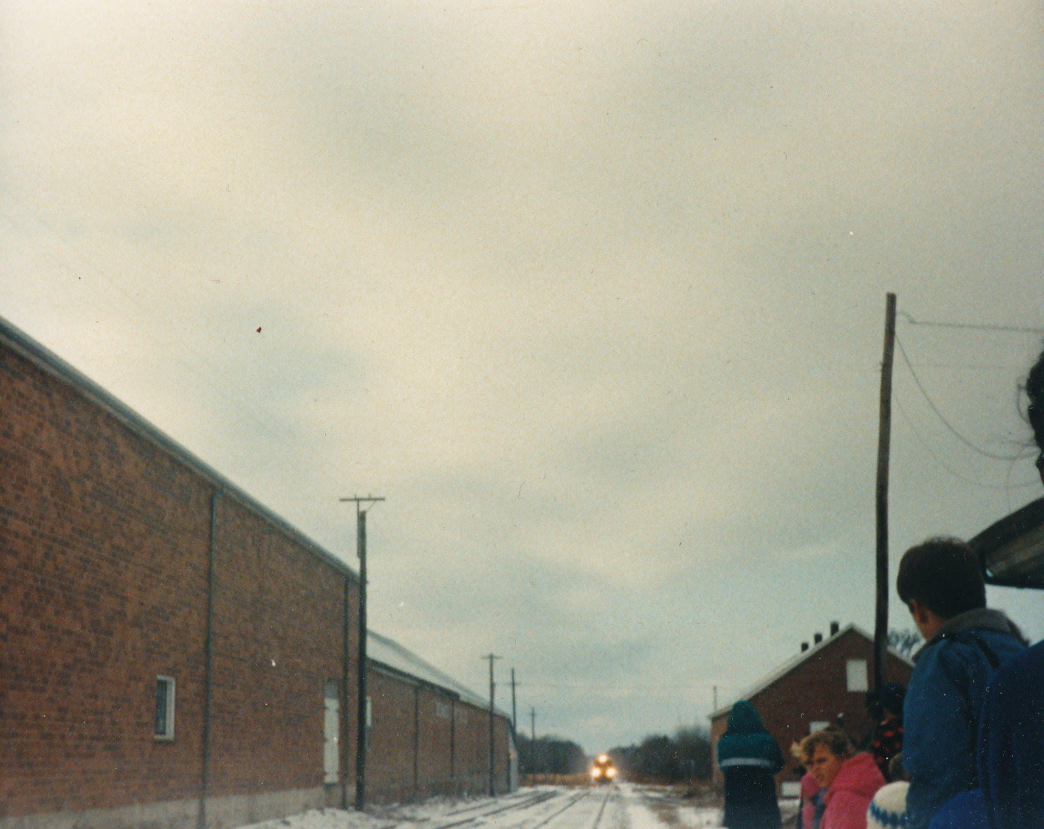 Residents of Berwick gather to witness the last eastbound passenger train at the at the Berwick Station, photographed by Mary Louise Conlin, January 14, 1990.
