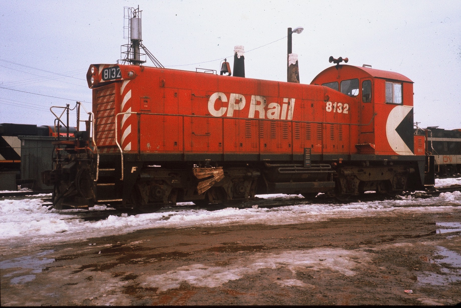 CPR No. 8132 at Truro in 1978. This was taken at the Truro Shop which at this time was one section of the old CNR roundhouse that was converted into a carshop and diesel maintenance area. When a engine was being transfered either way through Truro it was taken to the shop to be coupled to the CNR motive power.