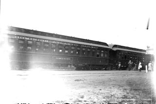 DAR coach No. 7 "Flower De Luc" in train with another coach, possibly No. 2 or No. 3 at unknown location, circa 1910.