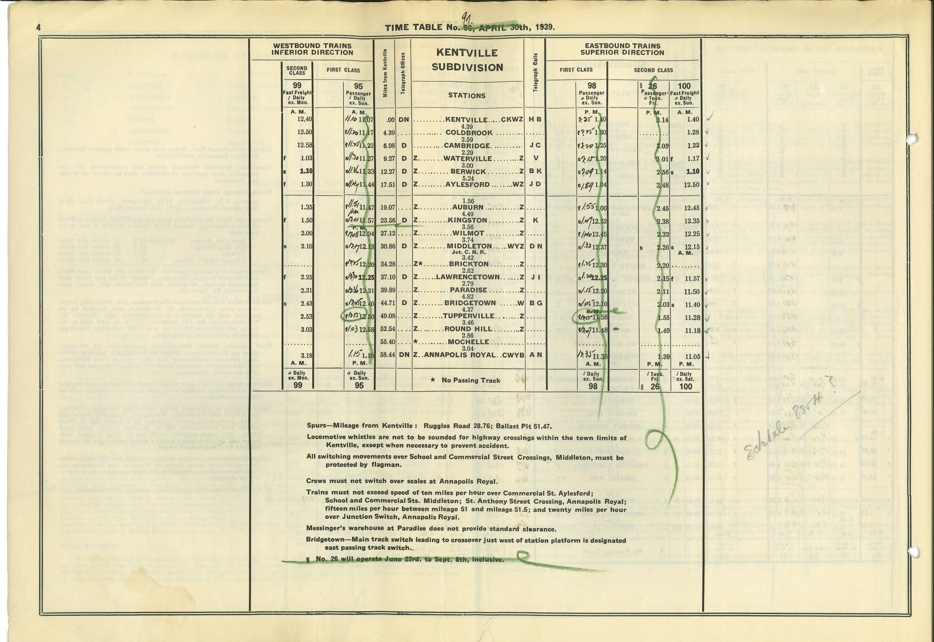 Dominion Atlantic Employee Time Table Nr. 96, effective April 30, 1939 - page 4