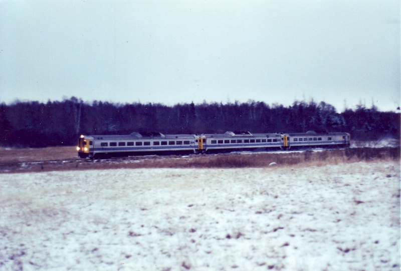 Eastbound Evangeline at Bloomfield with two RDC-1s and one RDC-2. No date.