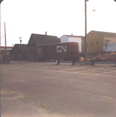 CN 50' boxcar spotted at Garson's Scrap Metal sometime in the 1980's. Is this CN's former track? It appears to be quite south of the Yarmouth_Railyard.