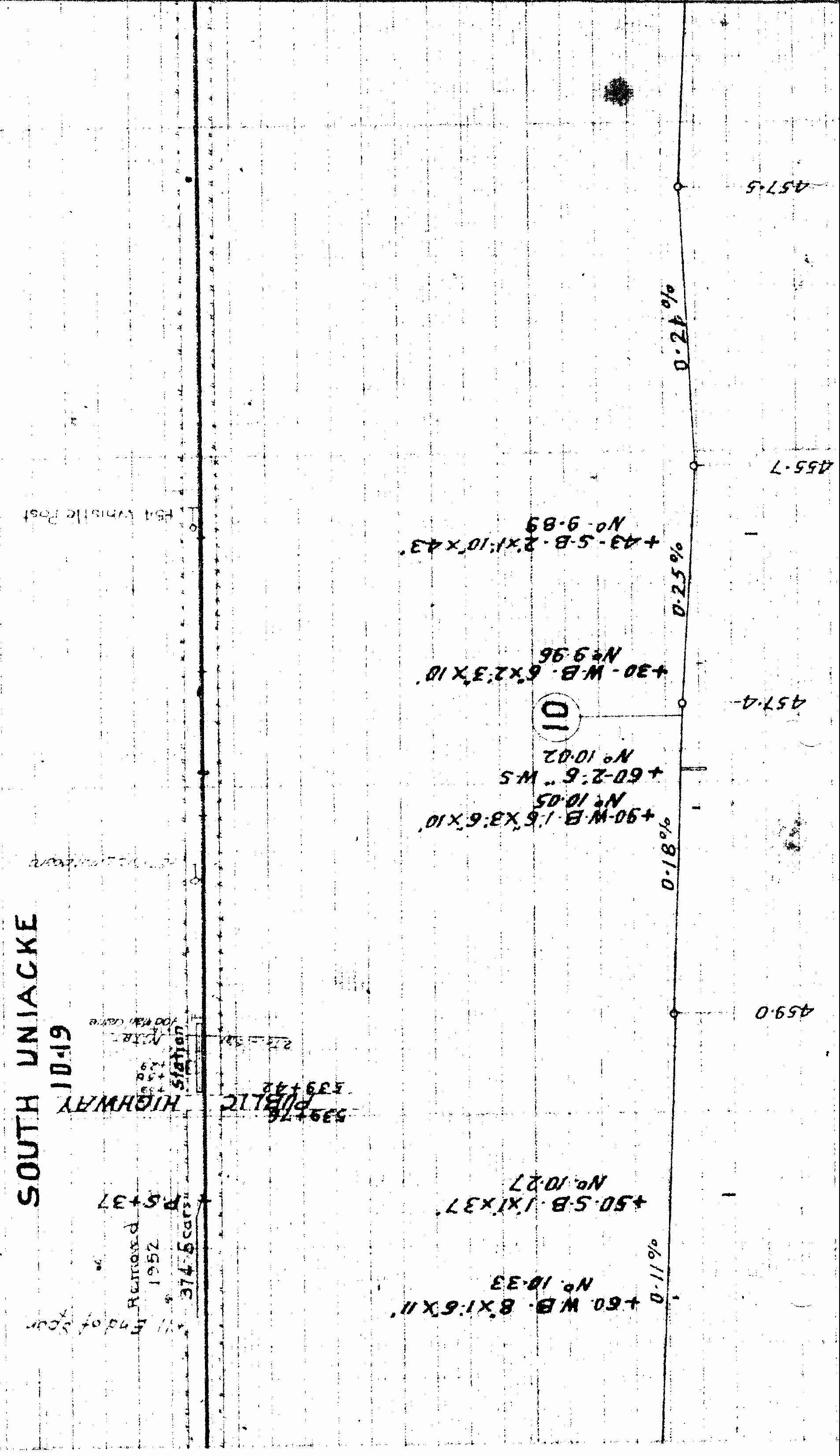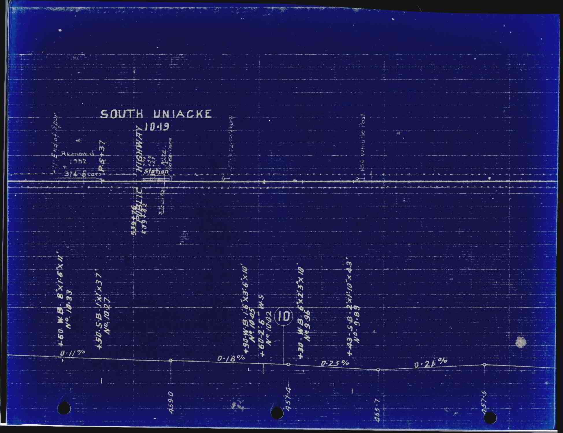 A clip of the March 18, 1918 C.P.R. track profile drawing showing South Uniacke. The orientation of the track is west to the left (looking from the south). The most recent update, for the removal of the siding, is dated 1952.
