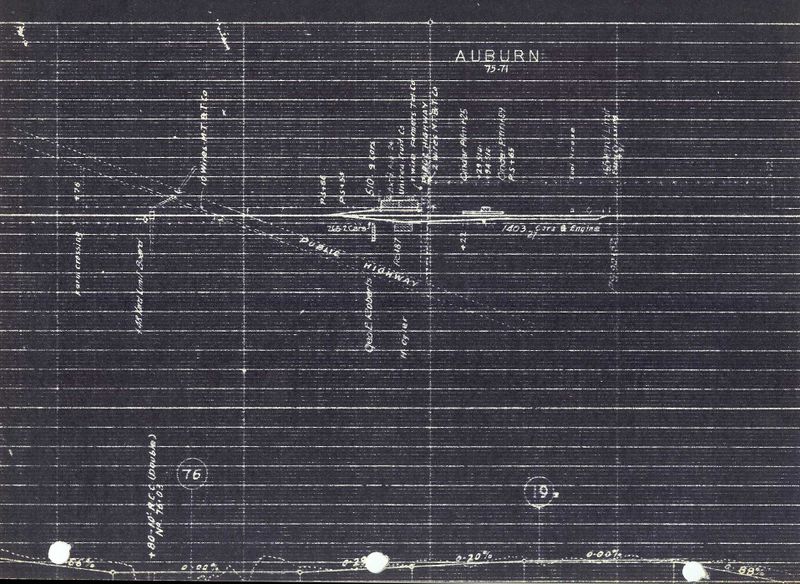A clip of the March 18, 1918 C.P.R. track profile drawing showing Auburn. The orientation of the track is west to the left (looking from the south).