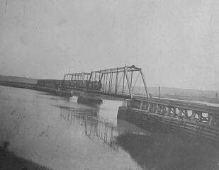 Locomotive No. 24 with an westbound passenger train crossing the Gaspereaux River Bridge in Horton Landing, Aug 24, 1902.