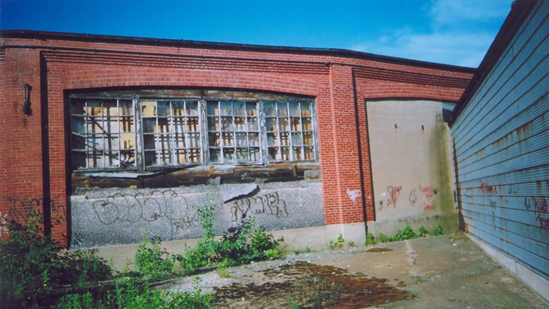 Photograph of the window and back wall for Stall 2 on the west side of the Kentville Roundhouse, photographed by Tom Tupper, June 29, 2007. Note large amount of surviving window fabric.