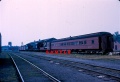 Ice house viisble to far right of crew car No. 411677 beside the work train at the railroad yards on July 18, 1975.
