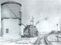 DAR locomotive No. 556 watering at the Windsor Water Tower with the Windsor Wear textile factory to the left and the Colonial Fertilizer Plant to the right.