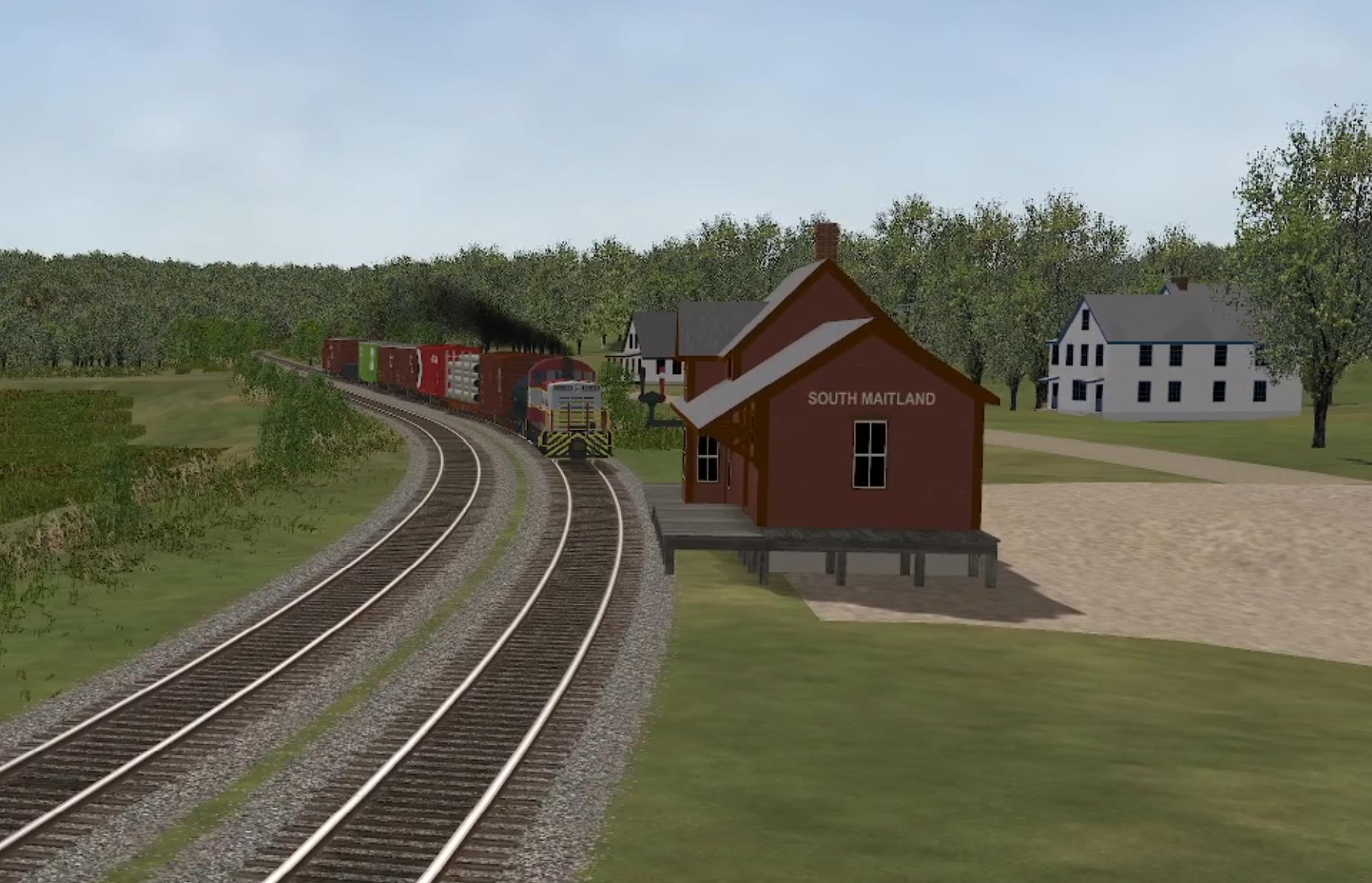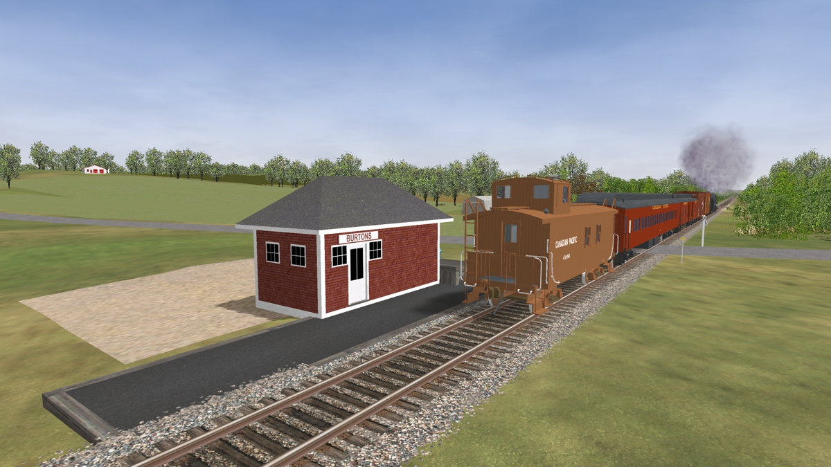 All the track has been laid for years, you should have it in the beta from a while back. There is one thing I need to fudge, the turntable and engine stalls in the roundhouse. The Kentville turntable tracks are on 8 degree centers, CN used 7 1/5 degree centers. MSTS/OR only has a turntable track that's 27.8m long, that's 88 feetish. So Kentville is a bit too long and CN Truro is going to be a bit too short (should be 92 feet). I have no choice and I don't think it's possible to have two different turntables using the same 27.8m track, so both will be the same models. That said, the DAR will still be leasing two stalls in the CN enginehouse and you will be able to run in and out of it.
