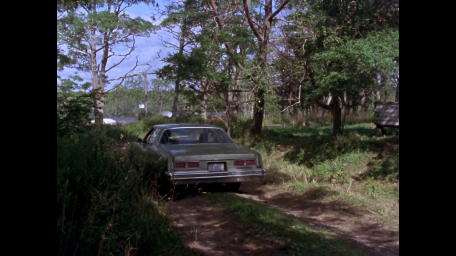 This final screenshot shows a crossbuck from the point-of-view of the main characters' car. Not much more to it, aside from one of the women in the car (this is supposed to be a chase scene) mentioning how the car they were following just blew through the crossing without looking out for a train. Again, no idea as to where this is supposed to be...