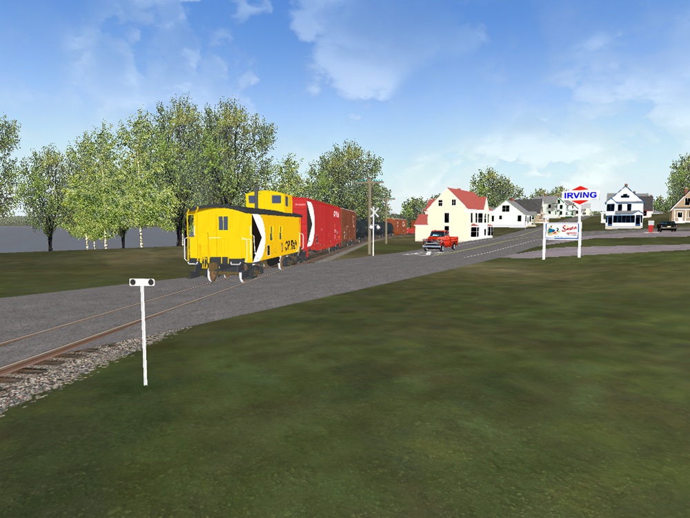 After a brief stop in Digby, Train 1 continues south crossing the south end of 1st Avenue.