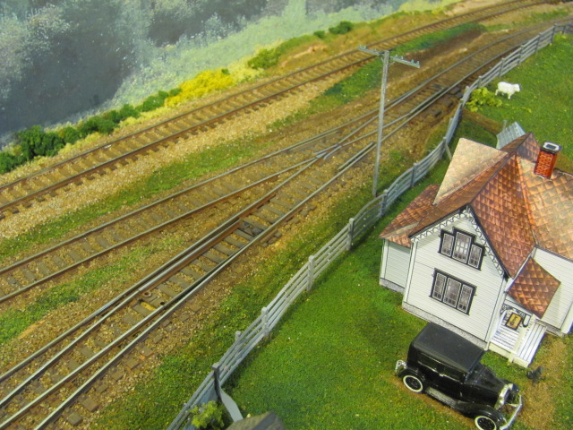 Here is a shot of showing my recent ballasting. The lighter tracks in the background are the Woodland Scenics blend. The darker stuff in the foreground is real DAR ballast.
