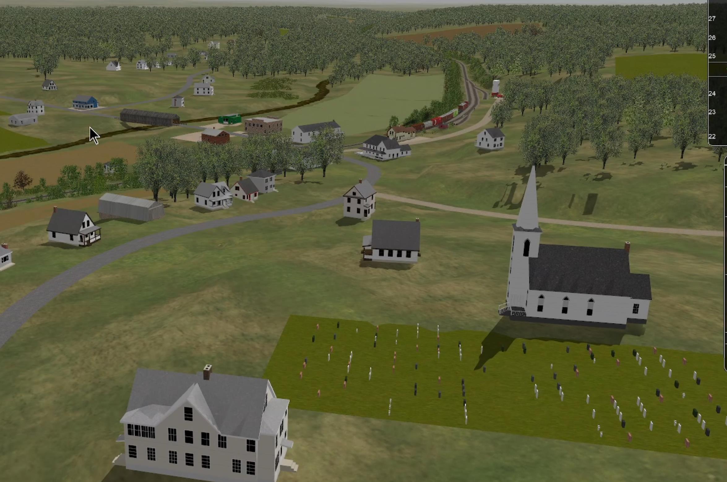 All the track has been laid for years, you should have it in the beta from a while back. There is one thing I need to fudge, the turntable and engine stalls in the roundhouse. The Kentville turntable tracks are on 8 degree centers, CN used 7 1/5 degree centers. MSTS/OR only has a turntable track that's 27.8m long, that's 88 feetish. So Kentville is a bit too long and CN Truro is going to be a bit too short (should be 92 feet). I have no choice and I don't think it's possible to have two different turntables using the same 27.8m track, so both will be the same models. That said, the DAR will still be leasing two stalls in the CN enginehouse and you will be able to run in and out of it.