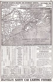 | 11:36, 15 October 2019 | 1867TimeTable.jpg (file) | 1.12 MB | This seems to represent the extent of the Nova Scotia passenger railway transportation system at the time of Canadian confederation. You'll notice on the last line that, before the DAR to Yarmouth was dreamed of, ocean steamships were transporting pass... | 1 | |