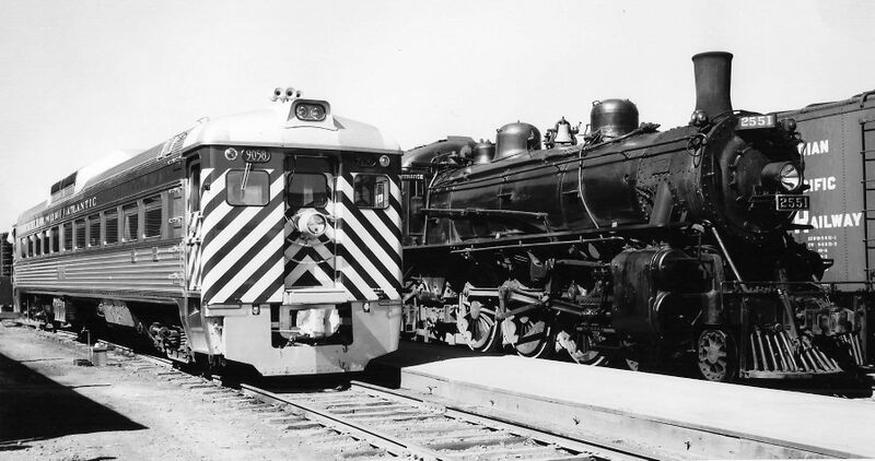 | 14:55, 23 October 2019 | 760 × 378 (114 KB) | Sarah Taylor (talk | contribs) | ''Courtesy of Old Time Trains''<br> The new and the old side by side. The Dayliner appears to be on tour likely at Kentville.<br> Note extra (white) flag on front of 9058. Also, ENTRANCE sign at right rear of Car.<br> Photograph Steve Morris Collec... |