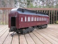 Likely repainted many times by the DAR, purchased and restored by Gary Ness and then donated to the Wolfville Public Library, the colour source is still thought to be in the 30 or 40's vintage. Unfortunately the passenger car is little more than a parade float model and is in fact painted the same colour as the locomotive which clearly the CPR or to our knowledge the DAR never did. From that we will consider the colour of this passenger car to be inadmissable for the purpose of determining the true colour of the passenger cars in any period.