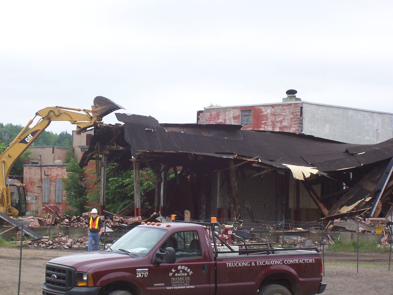 The demolition of the last portions of the Kentville Roundhouse, photographed by Bria Stokesbury, Kings Historical Society, July 10, 2007.
