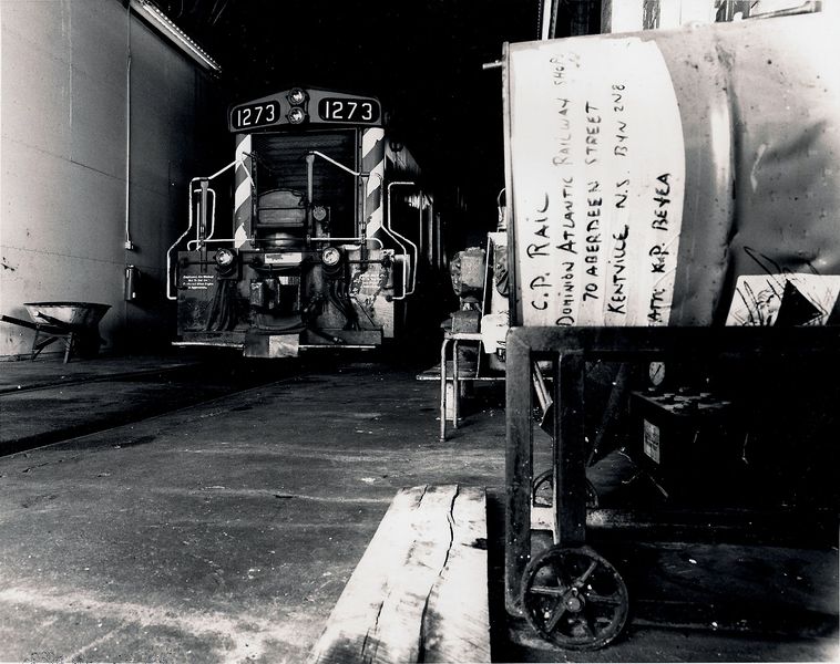 No. 1273 inside the Kentville Car Shop in August 1992.