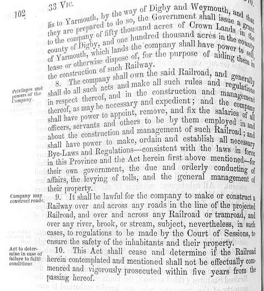 Photograph of a page from a book of acts of the Nova Scotia Legislature passed in 1870.