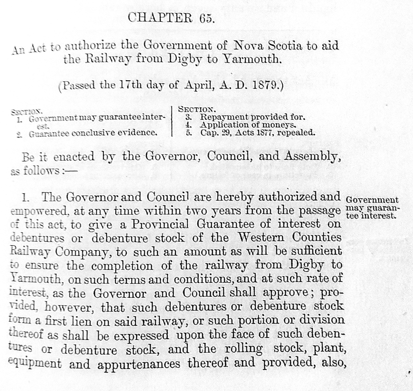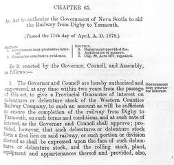 | current | 16:59, 27 June 2023 | 850 × 805 (512 KB) | Sarah Taylor (talk | contribs) | Source Nova Scotia Archives<br> Photograph of a page from a book of acts of the Nova Scotia Legislature passed in 1879.<br> Chapter 65 of the Acts of 1879<br> Page 1<br> Category: Nova Scotia Archives |