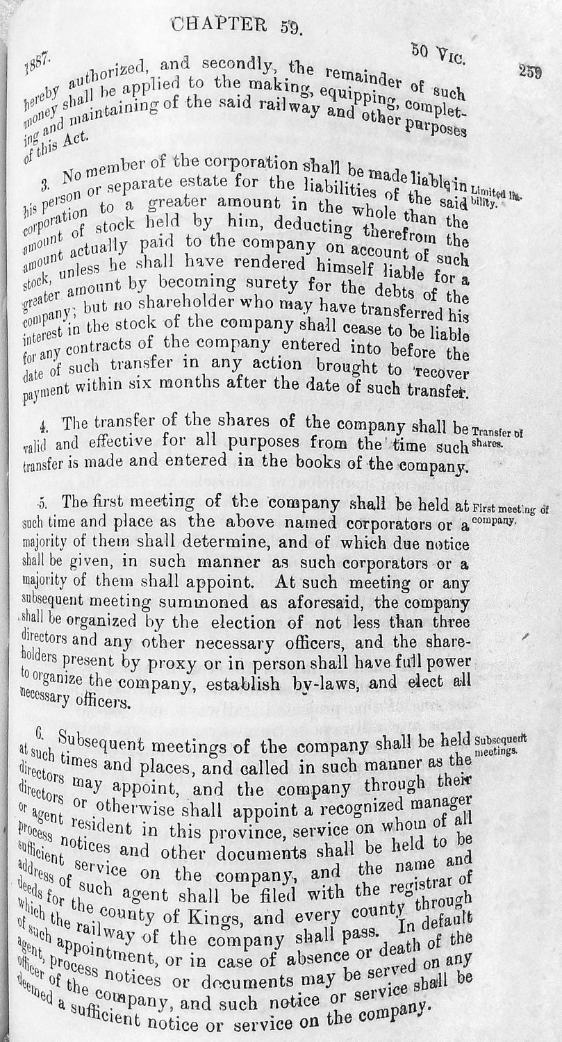Photograph of a page from a book of acts of the Nova Scotia Legislature passed in 1887.
