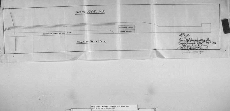 Title: Digby Pier - Min. P.W. [Minister of Public Works] 1895/02/04 recds. [recommends] that Dominion Atlantic Ry. [Railway] Co. be authorized to lay one railway track on