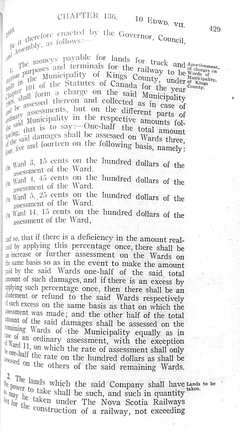 Photograph of a page from a book of acts of the Nova Scotia Legislature passed in 1910.