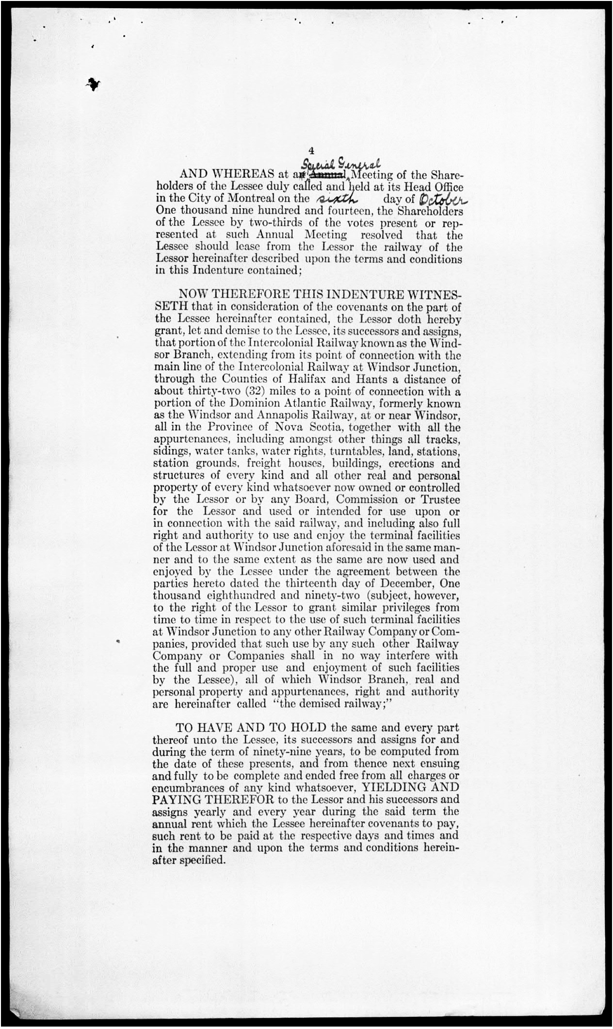 Title: Dominion Atlantic Ry. [Railway] - Approval lease from the Govt. [Government] of the Windsor Branch Ry. [Railway] - Min. R. and C. [Minister of Railways and Canals] 1914/10/31