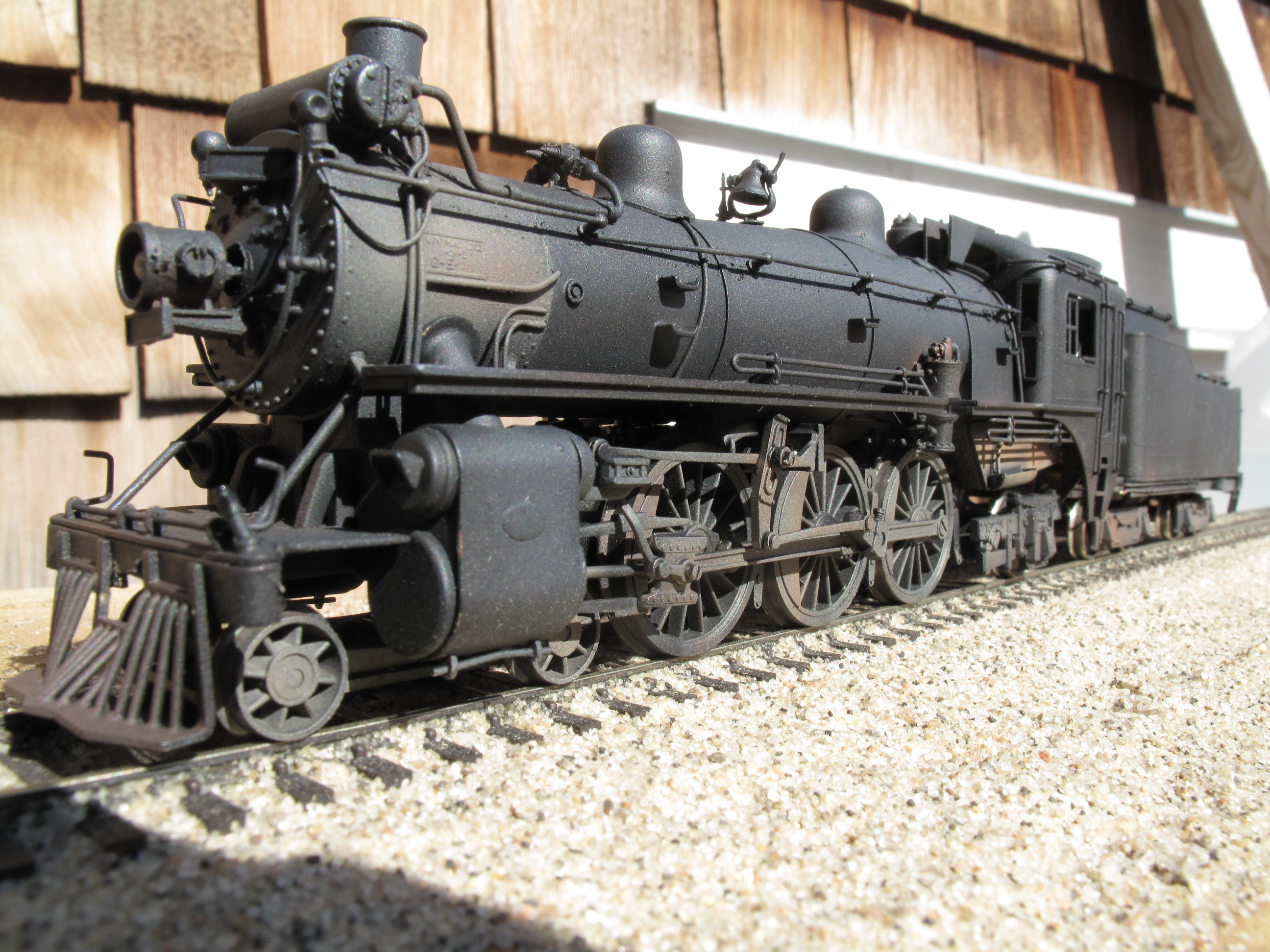 Nearly antique brass model (Toby, late 1960's?) of a G-2 Pacific, painted and weathered, awaiting decals and some bluing, and some semi-gloss on the boiler jacket, wired with DCC and running beautifully.