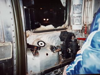 Cab of RDC VIA No. 6145 at Yarmouth, having just arrived with last passenger train on the DAR, photographed by Angelina Blinn, January 14, 1990.