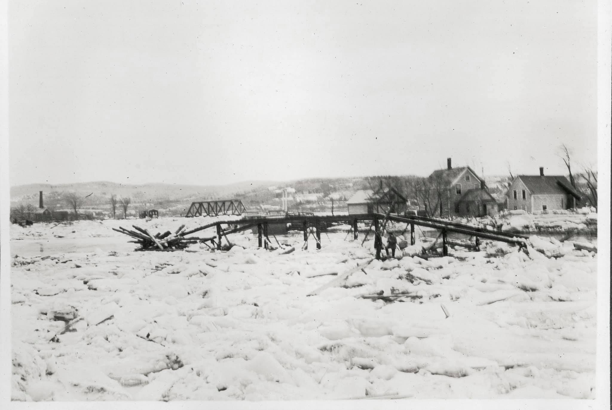 | current | 15:20, 27 March 2021 | 2,048 × 1,372 (143 KB) | Dan conlin (talk | contribs) | Photograph titled "High tide", the road bridge at Bridgetown collapsing during the March 14, 1920 ice jam and flood while the Bridgetown Railway Bridge stands firm in the distance. Image by unknown local photographer from albu... |